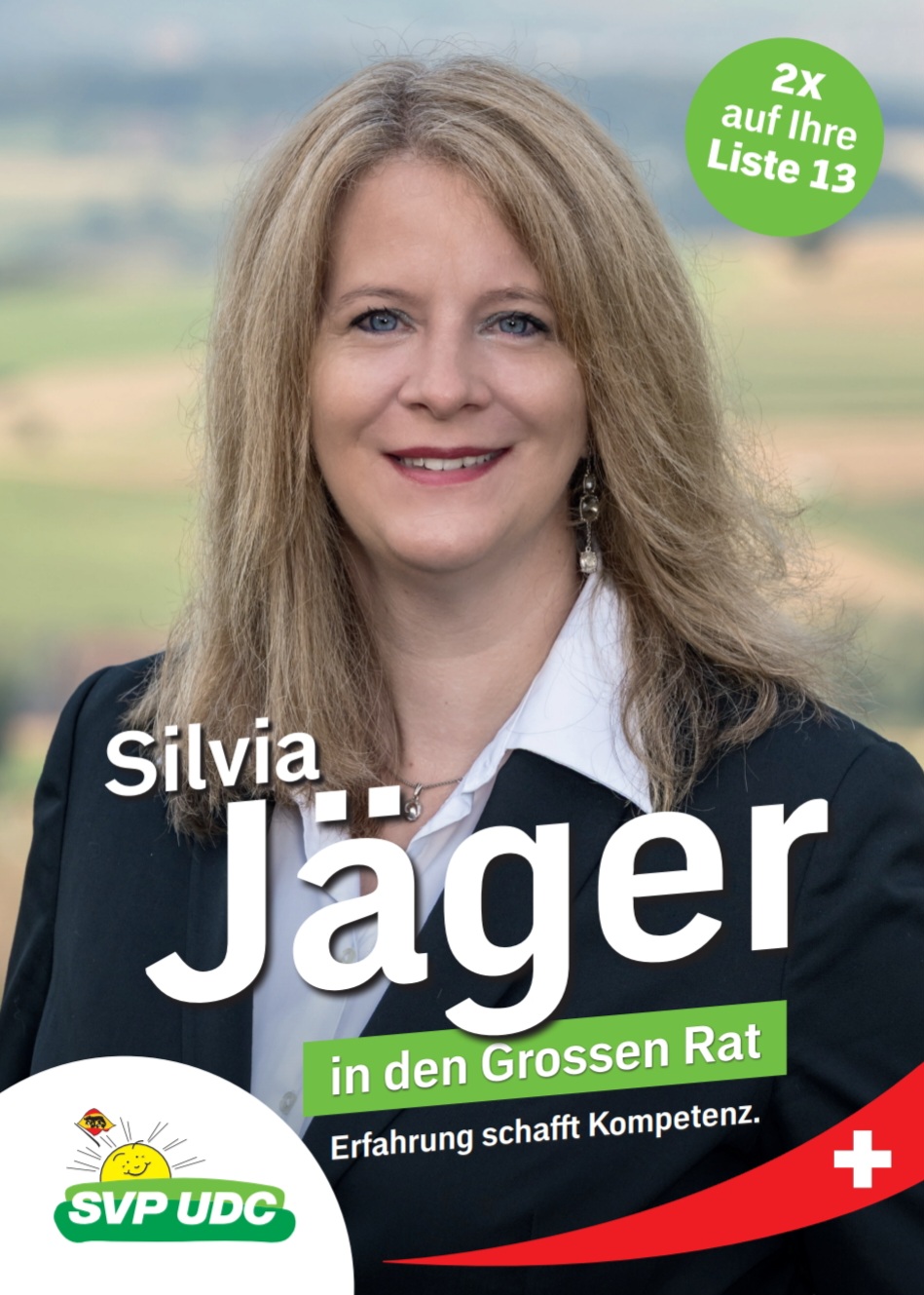 Meine Erfahrungen in Verwaltung, Privatwirtschaft und Politik – unter anderem als Geschäftsführerin der Region Oberaargau sowie als Vize-Gemeindepräsidentin von Vechigen – zeigen mir immer wieder: Es lohnt sich, sich mit Leidenschaft und Überzeugung für eine gute Sache zu engagieren. Vielen Dank für die Unterstützung und das Vertrauen und für 2x Silvia Jäger auf Ihre Liste.